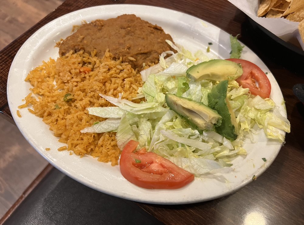 Enchilada, burrito, chile relleno & crispy taco served with mexican rice & beans.